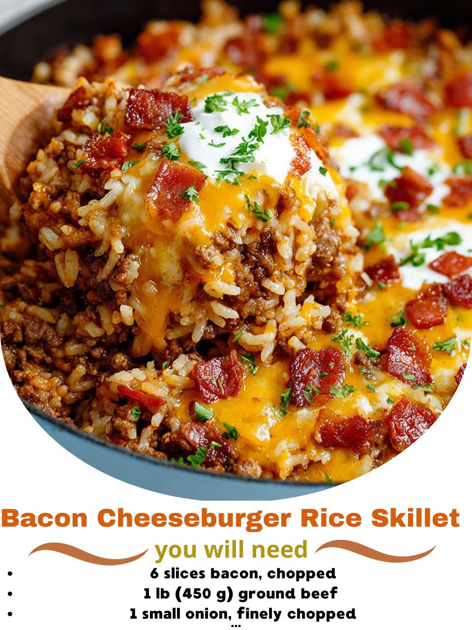 If your dinner dreams swing between hearty skillet suppers and the crave-worthy combination of bacon, beef, and cheese, Bacon Cheeseburger Rice Skillet is about to become your new weeknight hero. This dish delivers all the flavors of a classic bacon cheeseburger—savory beef, sharp cheddar, crispy bacon, sweet onions, and the tang of ketchup and pickles—folded into fluffy rice and finished in a single pan.