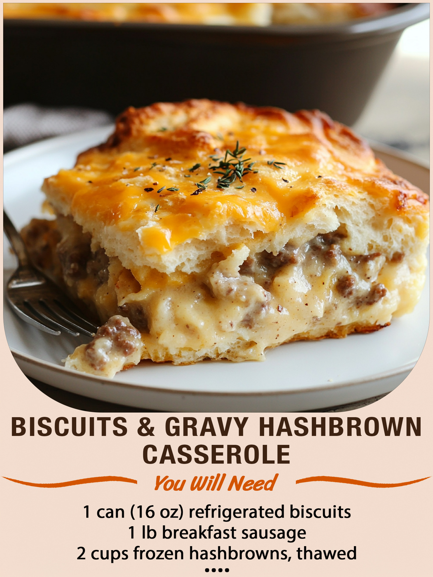 I still remember the first time I pulled this casserole out of my oven. It was a chilly Sunday morning, the kind that begs for something hearty, and my kitchen was filled with the most intoxicating aroma—savory sausage, toasty biscuits, and that unmistakable scent of comfort. I had been craving the classic flavors of biscuits and gravy but wanted something even more substantial, a true one-pan wonder. This recipe was my happy experiment, and the moment I took that first bite of fluffy biscuit, creamy gravy, and crispy hashbrown all in one forkful, I knew I’d stumbled onto something magical. It’s the dish I now make for lazy weekend brunches, holiday mornings, and anytime I need a guaranteed crowd-pleaser that feels like a warm hug.