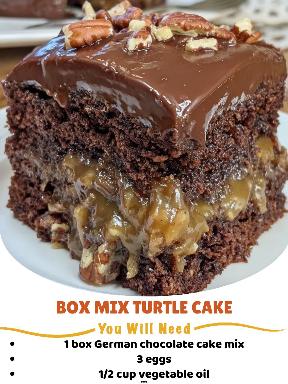 This cake was born out of sheer necessity—and a serious caramel craving. I needed a show-stopping dessert for a last-minute potluck and only had a box of German chocolate cake mix, a bag of pecans, and a jar of caramel in my pantry. I decided to layer them all together, hoping for a miracle. As the cake baked, my kitchen filled with the warm, chocolatey scent of childhood, mingled with the nutty aroma of toasting pecans. When I poured that warm caramel over the hot cake and heard it sizzle and seep into every pore, I knew I’d created something magical. That first sticky, chewy, chocolaty-nutty bite was pure, decadent bliss.