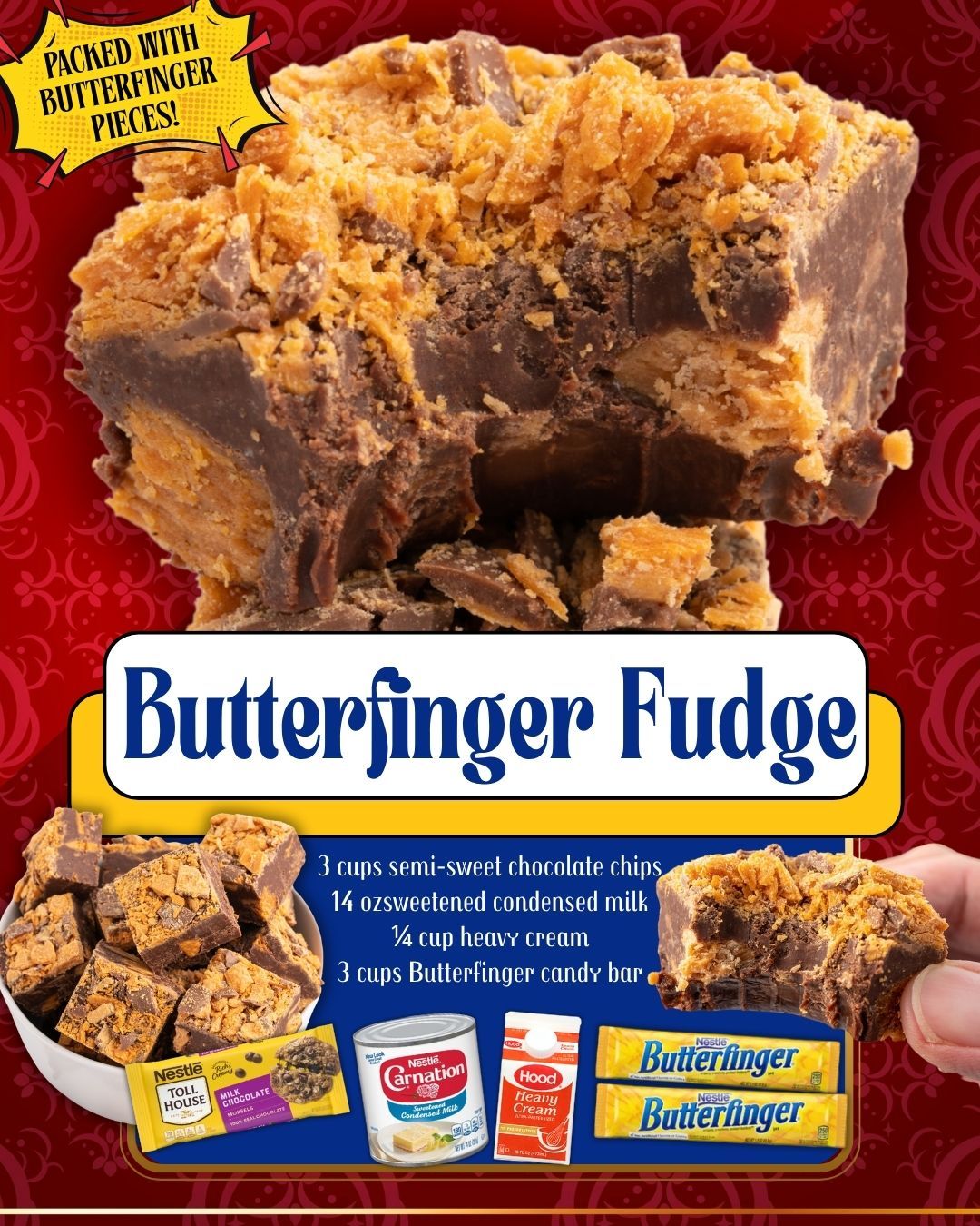 - Additional ¼–½ cup chopped Butterfinger or crushed Butterfinger bits if you want a heavily loaded top layer.
