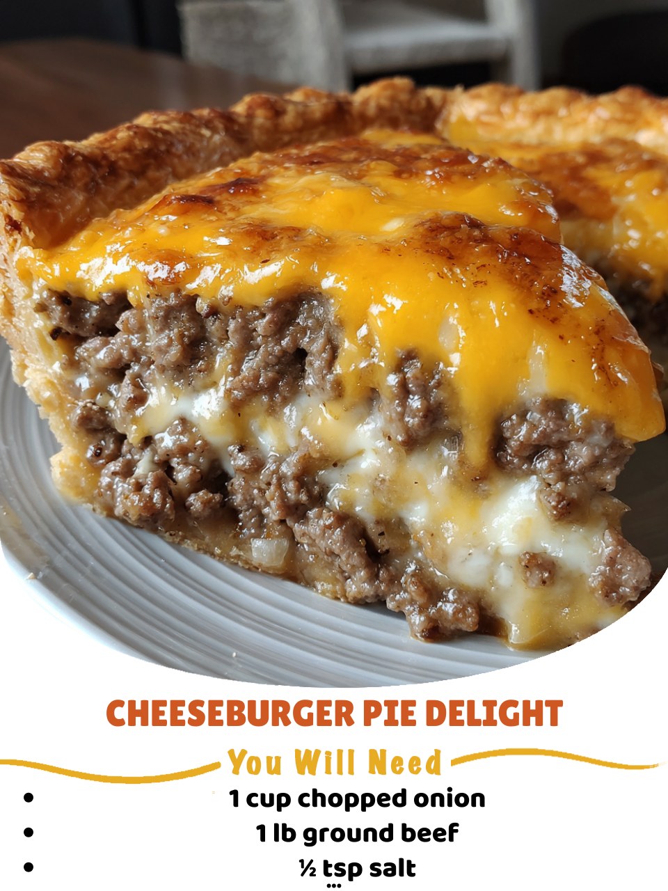 It was one of those nights where the family couldn’t decide between burgers and a cozy casserole. Staring at a pound of ground beef, I had a “eureka” moment: why not combine them? I started sautéing onions, and that savory, mouthwatering smell filled my kitchen, followed by the rich scent of browning beef. When I poured the cheesy, custard-like filling over the top and watched it puff into a golden-brown crust in the oven, I knew I’d created something special. That first slice, with all the hearty flavor of a cheeseburger in a warm, comforting pie, was an instant hit. It’s now our beloved “Cheeseburger Pie Delight.”
