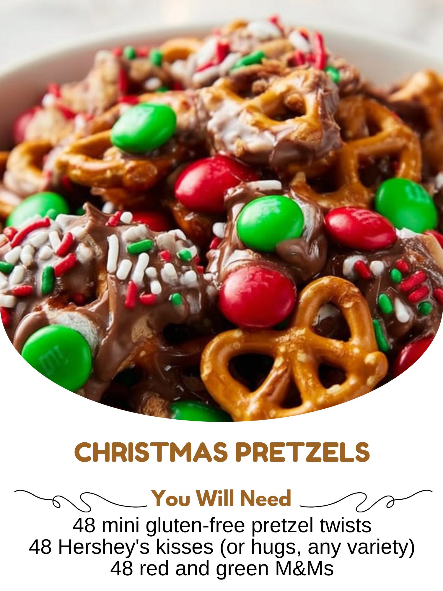 Let’s talk ingredients, because even in simplicity, choices matter. First, use the square or waffle-grid gluten-free pretzels if you can find them. I’ve tried this with the standard mini twists and the square ones, and the flat, solid base of the square pretzel provides a much more stable platform for the kiss and M&M, preventing them from sliding off. If you can only find twists, they work just fine! For the chocolate, classic milk chocolate Kisses are perfect, but don’t be afraid to mix it up—Hugs (the white and milk chocolate stripes) look especially festive, and Rolos create a delicious caramel surprise inside. And for the M&Ms, the classic red and green are a must for that iconic Christmas look, but you can use any seasonal color mix.(See the next page below to continue…)