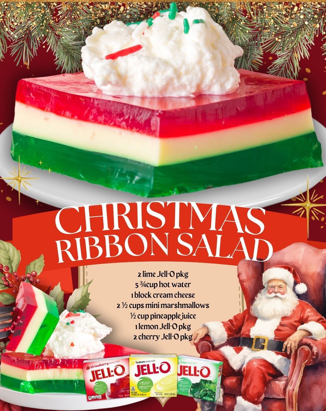 The first time I made Christmas ribbon salad, my whole kitchen transformed into a holiday wonderland filled with the nostalgic scent of fruity gelatin and sweet marshmallows melting into warm cream cheese. I remember watching the colors layer so beautifully—green, white, and red—almost like wrapping paper in dessert form. As each layer set, the excitement built, and when I finally sliced into it, the perfect stripes made me smile. It’s one of those recipes that feels like Christmas magic captured on a plate, and I’ve loved it ever since.