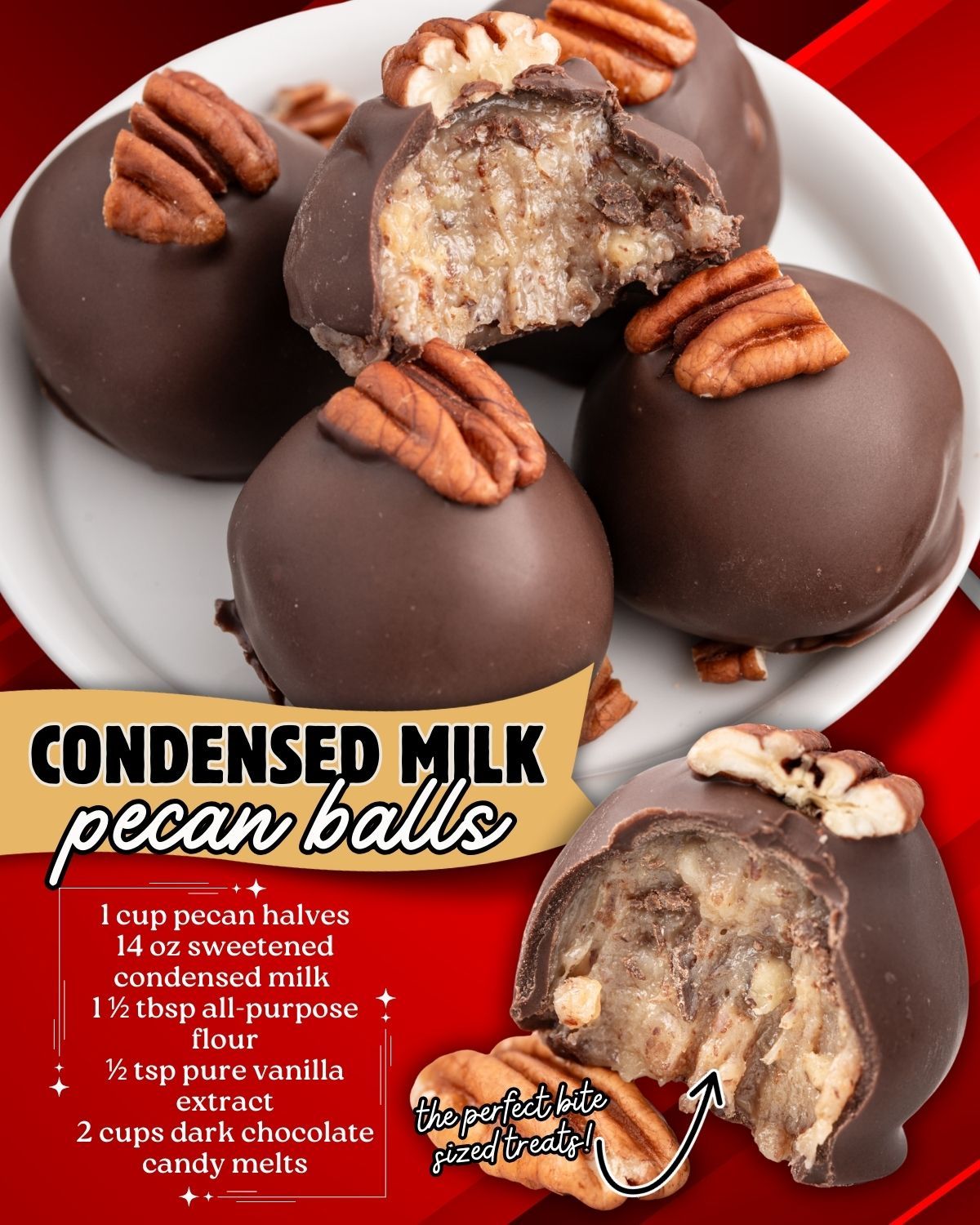 The first time I made CONDENSED MILK PECAN BALLS, my kitchen instantly filled with the warm, sweet scent of toasted pecans and creamy condensed milk, and I remember thinking that it smelled like the very essence of the holidays. As I stirred the mixture together, the condensed milk turned glossy and rich, coating every little crumb like liquid gold. When I rolled the warm mixture into small balls and dusted them with powdered sugar, it felt almost therapeutic—each ball soft, fragrant, and slightly warm in my hands. And when I took the first bite, the soft, melt-in-your-mouth sweetness combined with the nutty pecans felt so comforting and nostalgic that I knew this was going to become one of my go-to treats forever.