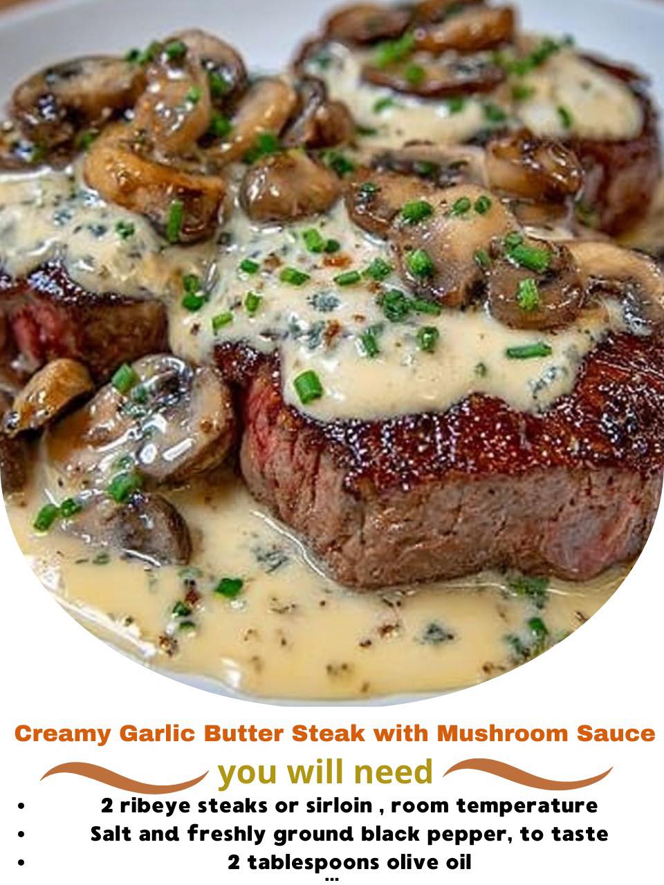 Creamy Garlic Butter Steak with Mushroom Sauce