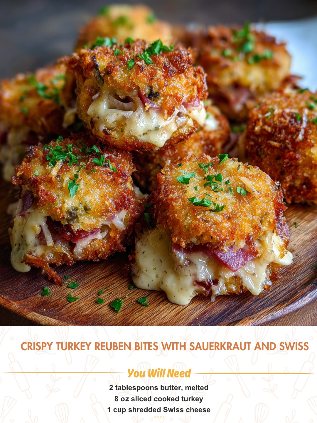 Crispy Turkey Reuben Bites with Sauerkraut and Swiss are a joyful celebration of flavor, texture, and creativity—equally perfect for using up holiday leftovers or for wowing a party crowd at any time of year. They bring everyone to the table with the promise of gooey cheese, tangy kraut, and golden crunch in every bite.