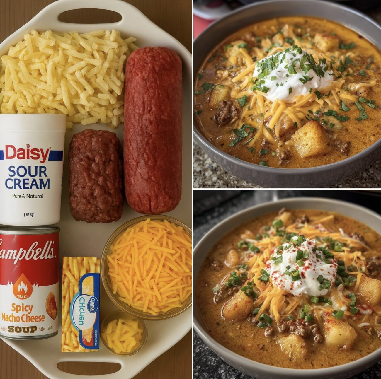 One of the big perks of this recipe is that it relies on frozen hash browns instead of peeling and dicing whole potatoes, which dramatically cuts down on prep time. Shredded hash browns will give you a smoother, restaurant-style loaded baked potato soup with a more uniform texture, while diced or cubed potatoes will leave you with more distinct potato chunks that some people prefer.