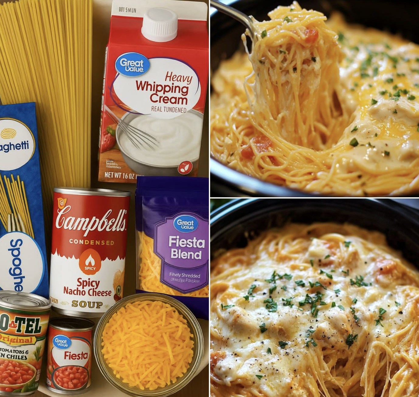 I first made this dish on a day when I had a mountain of work and zero energy to cook dinner. I needed my slow cooker to do literally everything. I threw in some chicken, a can of soup, and a block of cheese, crossed my fingers, and walked away for hours. When I finally lifted the lid, the sight took my breath away. A creamy, bubbly, golden cheese sauce had formed, swirling around tender shreds of chicken and perfectly cooked spaghetti. The smell was intoxicating—buttery, cheesy, and deeply comforting, like the best childhood casserole you can imagine. That first forkful was pure, creamy bliss, and it’s been my ultimate busy-day lifesaver ever since.