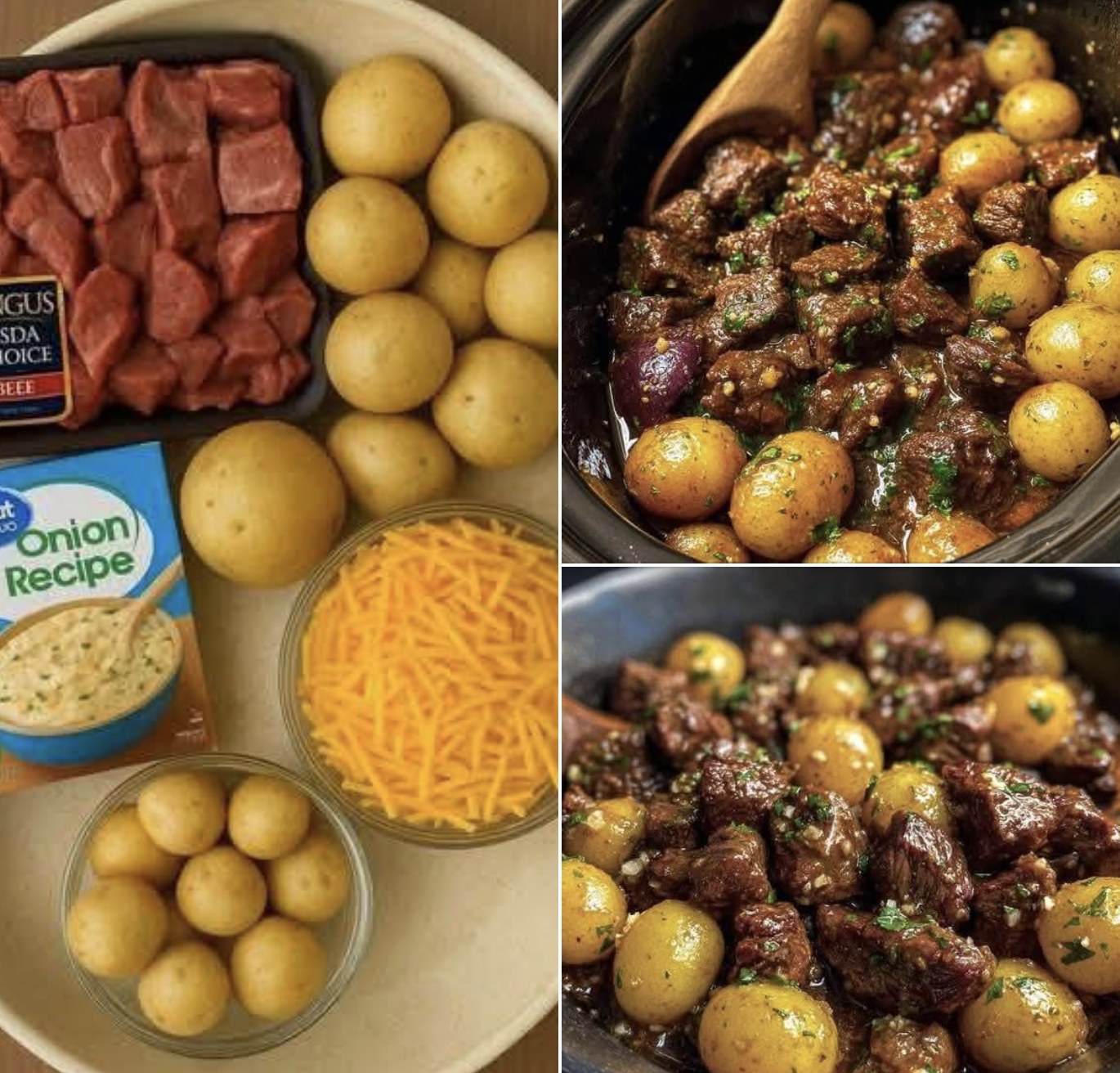This is the kind of recipe that quickly becomes a family favorite because it hits that classic “steak and potatoes” craving with almost no effort. You add everything to the crockpot, let it do the work, then spoon the buttery beef and potatoes into bowls and drizzle over the garlicky cooking juices.