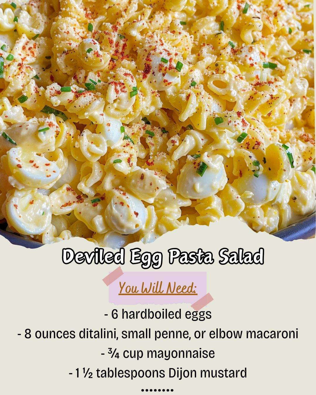 You are going to absolutely adore this recipe because it takes the nostalgic, creamy-tangy magic of deviled eggs and turns it into a hearty, shareable pasta salad that’s perfect for feeding a crowd. It’s incredibly easy to make, with no fancy techniques, and it actually gets better as it chills, making it the ultimate make-ahead dish for busy weekends, potlucks, or easy weekday lunches. The combination of tender pasta, rich egg yolks, and that signature mustard-kissed dressing is comfort food at its best—familiar, satisfying, and guaranteed to bring smiles.