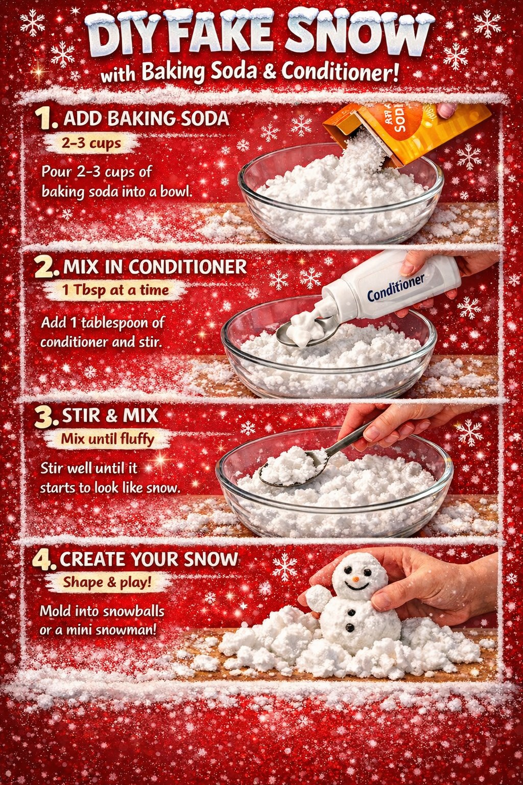 I remember the first time I made this DIY snow—it was a grey, slushy January afternoon, and my kids were glued to the window, wishing for a blizzard that just wasn’t coming. Our kitchen table became our laboratory. I poured the baking soda, and that soft, white mountain appeared. Then came the conditioner, and as I mixed, something magical happened. The powdery grains transformed into a cool, moldable, silky-soft substance that felt like fresh-packed snow. The scent of clean, faintly coconut conditioner filled the air, and the look of pure wonder on my kids’ faces was better than any real snowstorm. We had conjured winter magic right there at our kitchen table, and I knew this simple recipe was a keeper.