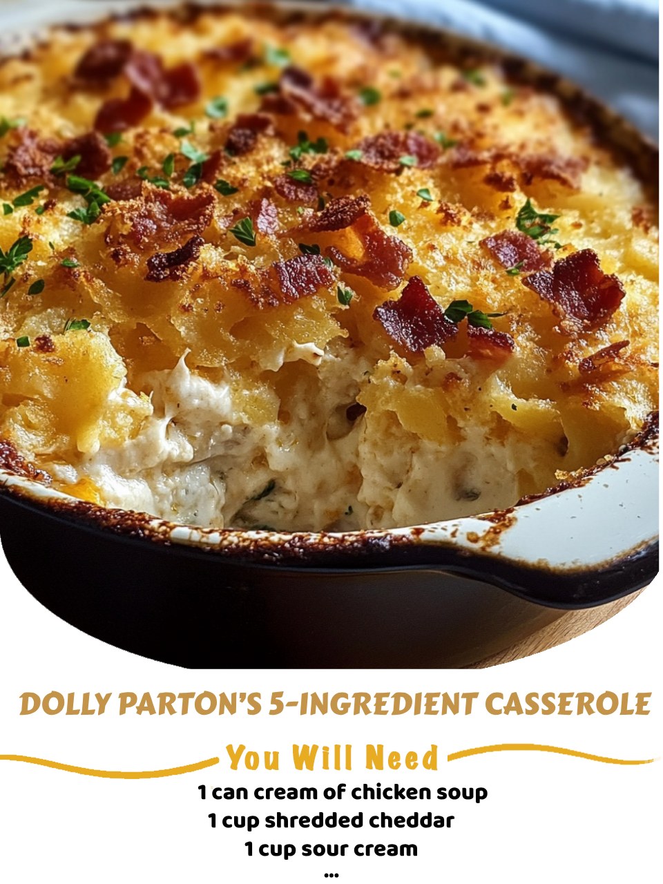 Dolly Parton’s 5-Ingredient Casserole is the cozy, creamy, crowd-pleasing Southern classic that proves simple is often best. With easy prep, flexible flavor, and the warm spirit of a beloved icon, it’s a dish you’ll turn to again and again for comfort, convenience, and connection.