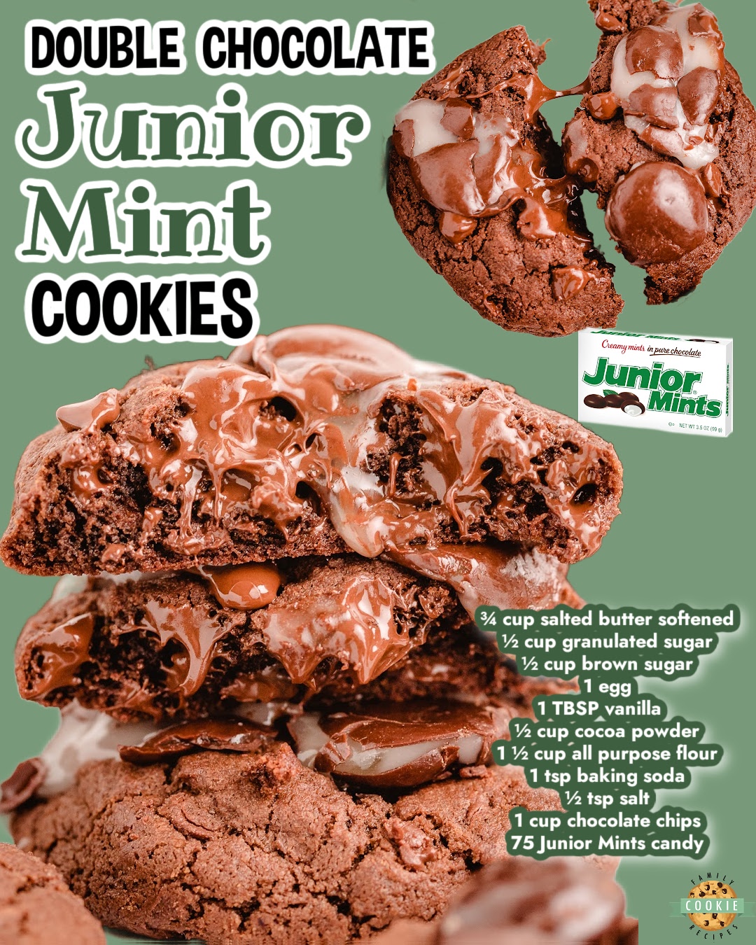 The very first time I made these Double Chocolate Junior Mint Cookies, my entire kitchen filled with the kind of rich, chocolatey aroma that makes you stop mid-sentence and just breathe in deeply. I remember pulling the first tray out of the oven and watching the melted Junior Mints glisten on top of the cracked chocolate cookie surface, creating that irresistible swirl of dark chocolate and cool peppermint. One bite was all it took for me to fall completely in love—the soft, fudgy center, the melty pockets of chocolate chips, and that burst of mint all came together in a way that felt cozy, nostalgic, and wonderfully indulgent.