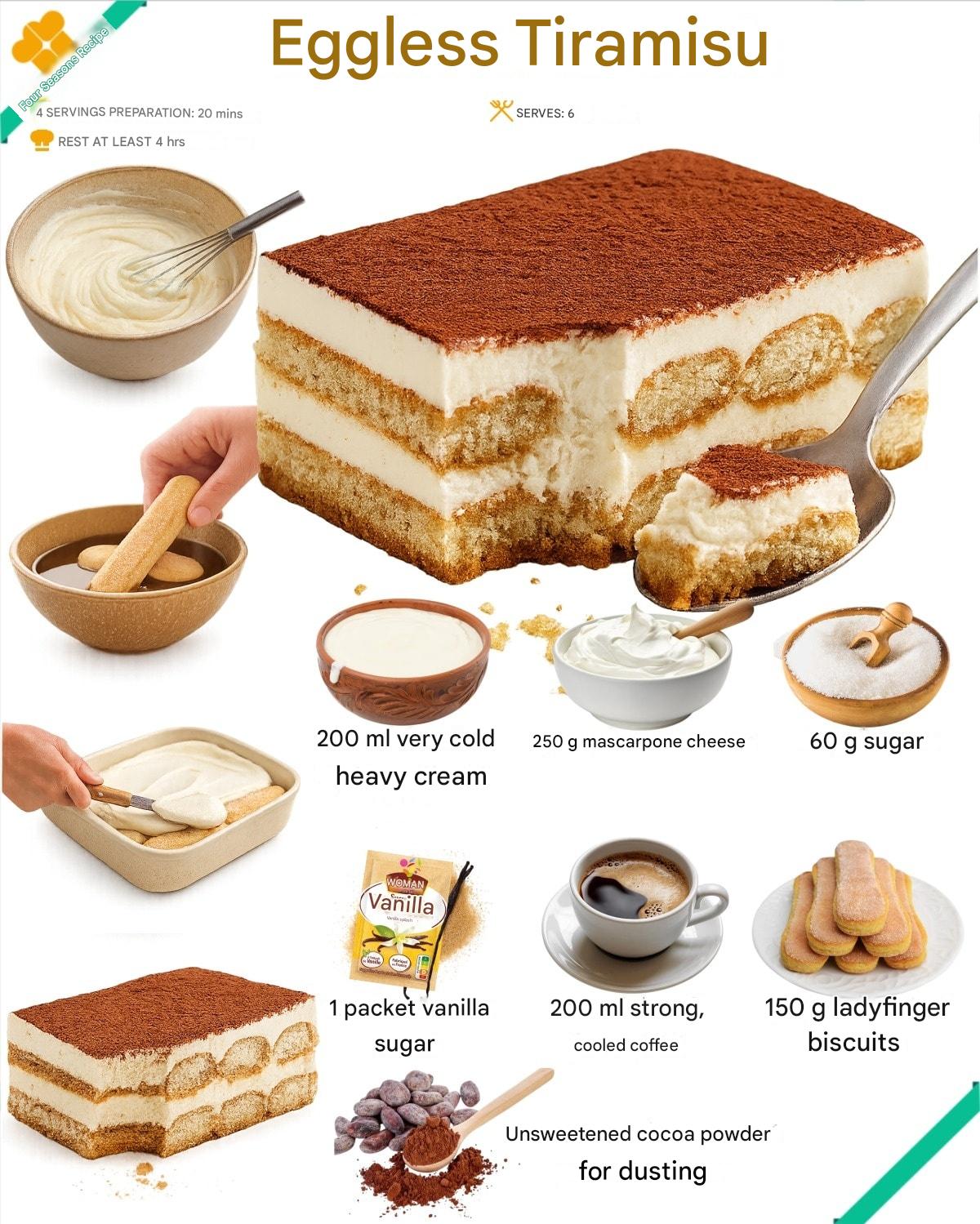 I discovered this egg-free tiramisu during a phase when I wanted the comfort of a classic dessert without worrying about raw eggs, and the first time I made it, my kitchen smelled deeply of coffee, cocoa, and vanilla. As I dipped the ladyfingers and spread the cream, everything felt calm and familiar, almost meditative. When I finally sliced into it hours later, the layers held beautifully, and the taste was just as indulgent as the traditional version, which instantly made me fall in love with this recipe.