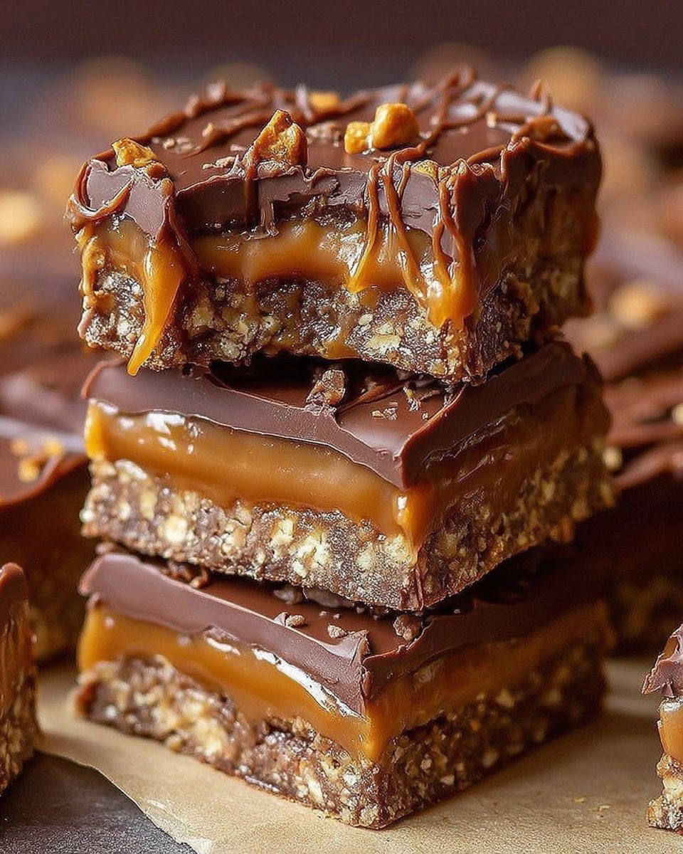 I can still remember the first time these bars came together in my kitchen, born from a pantry-clearing experiment. The rich scent of melting butter and brown sugar bubbling into caramel was a sweet, buttery perfume. Then came the unforgettable crackle of cereal hitting that hot, gooey layer, and finally, the smooth cascade of melted chocolate being spread over the top. The smell was pure nostalgia—like a gourmet candy bar factory had taken over my home. I could hardly wait for them to set, and when I finally cut into that glossy chocolate layer, revealing the hidden caramel crunch beneath, I knew I had created something dangerously special. That first bite—the crisp, the chew, the deep chocolate—was pure, unadulterated bliss.