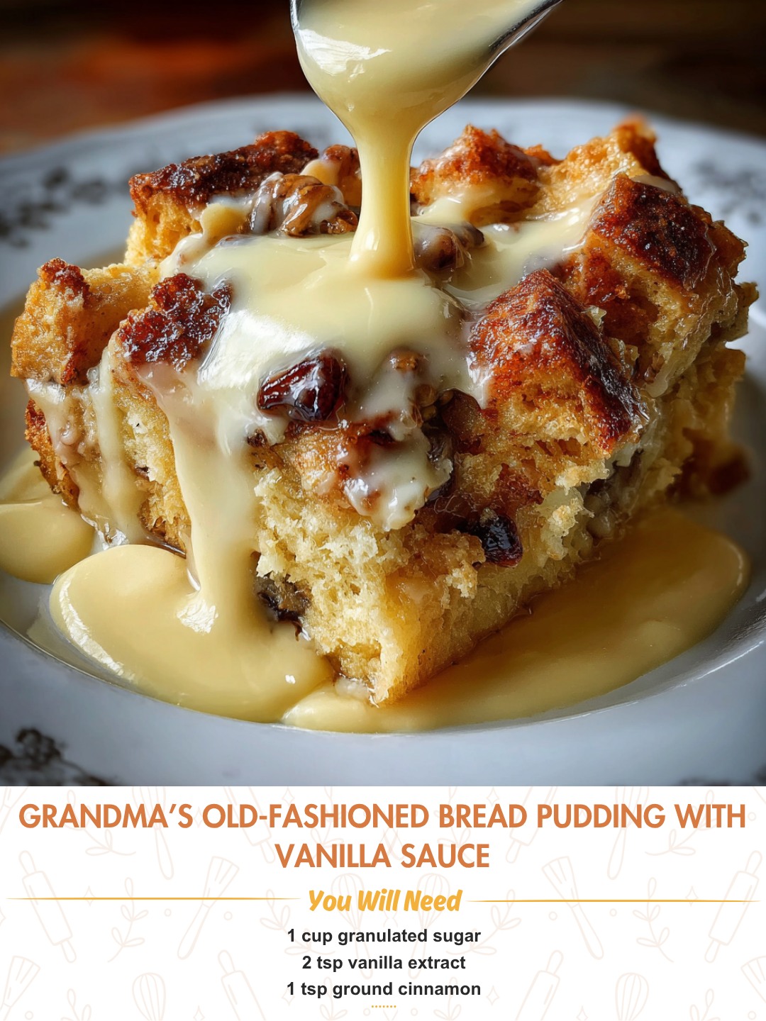 Grandma’s Old-Fashioned Bread Pudding with Vanilla Sauce