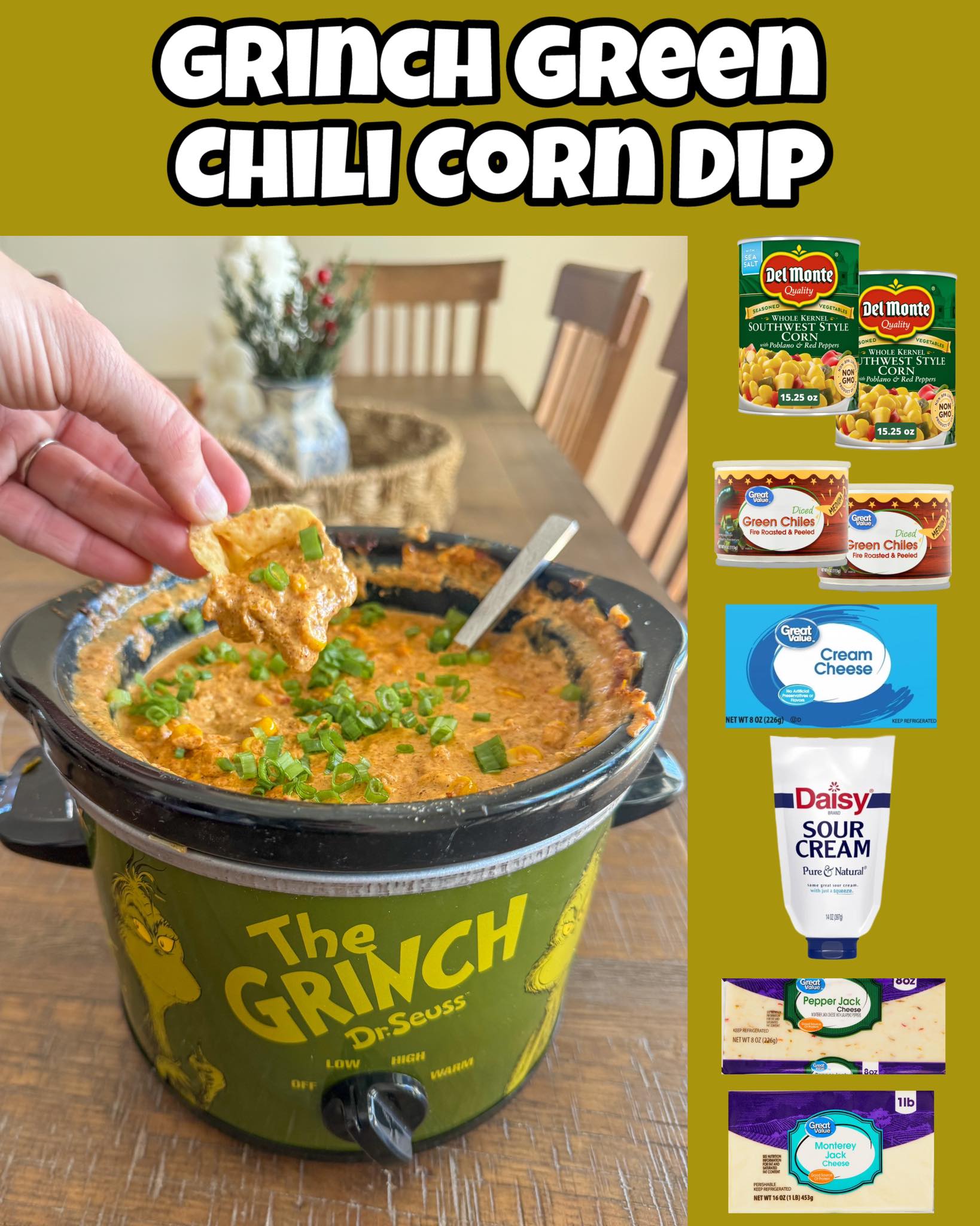 The first time I made this Grinch Green Chili Corn Dip, my whole kitchen smelled like cozy holiday comfort—warm corn, melty cheese, and that irresistible kick from the green chiles. I remember stirring everything together in my little festive slow cooker and watching the mixture transform into this bubbling, creamy dip that looked like it belonged at every Christmas movie night. It made me feel like I had discovered a holiday appetizer that could bring everyone together around the table.