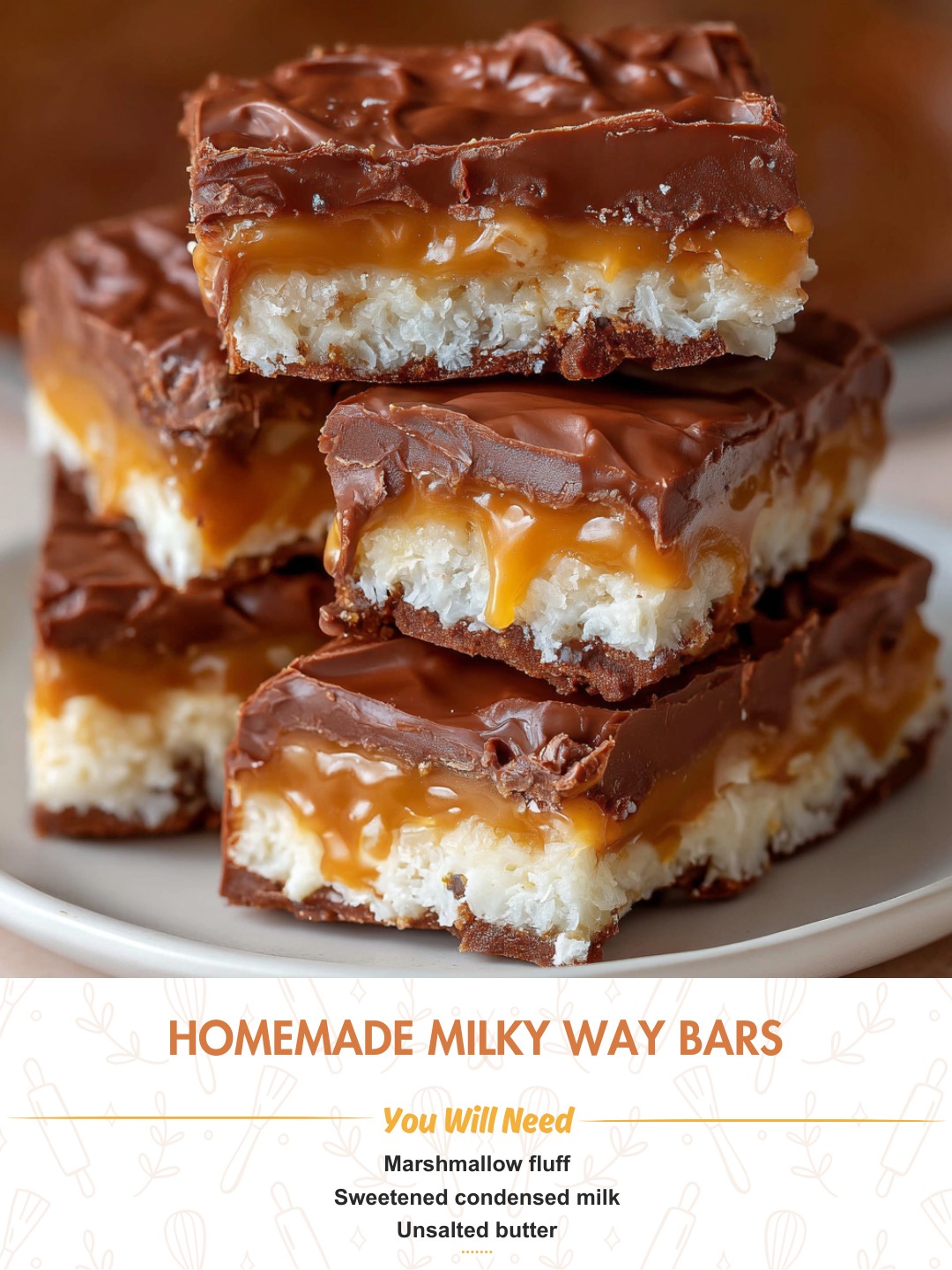 The first time I made these Homemade Milky Way Bars, I remember standing in my kitchen, stirring a silky mixture of melted butter and marshmallow fluff, and thinking, this smells better than anything I’ve ever unwrapped from a store-bought wrapper. When the caramel layer started bubbling gently on the stove, filling the whole house with that rich, buttery sweetness, I knew I was in trouble—in the best possible way. As soon as the chocolate set and I cut that first square, the layers held together beautifully: soft nougat on the bottom, gooey caramel in the center, and smooth chocolate on top. It felt like discovering a secret recipe I’d been missing my whole life.