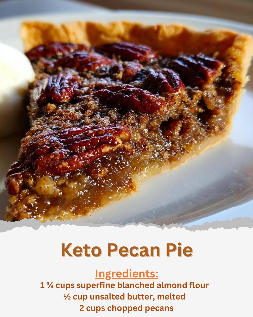 An almond‑flour crust stands in for traditional pastry: it’s naturally low carb, slightly nutty, and bakes up tender and buttery. The filling relies on a blend of keto sweeteners that caramelize smoothly, plus eggs and butter for body and richness.