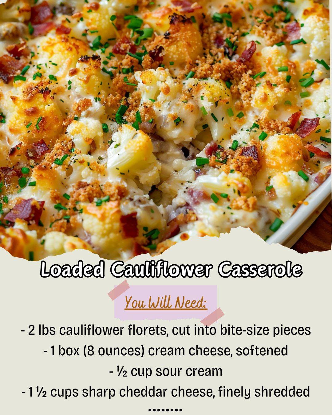 Let’s talk ingredients, because the right choices build maximum flavor. First, the cauliflower: do not use frozen florets if you can avoid it. I tried it once to save time, and they released so much water during baking that the casserole was soupy. Fresh cauliflower holds its texture and roasts beautifully. For the creamy base, full-fat dairy is non-negotiable. Low-fat cream cheese and sour cream can break and become grainy when baked. And trust me, do not skip the mayonnaise—it adds a tangy richness and helps create that luxurious, cohesive sauce that binds everything together. Finally, shred your own cheese off the block. Pre-shredded cheese contains anti-caking agents that prevent it from melting into that perfectly smooth, gooey blanket we all want.(See the next page below to continue…)