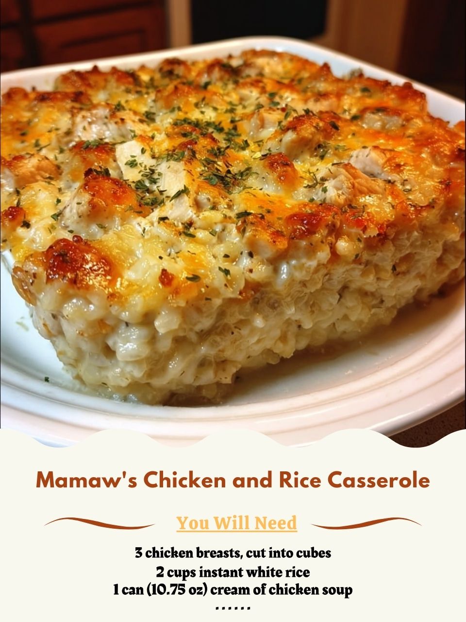 Mamaw’s Chicken and Rice Casserole is one of those heartwarming meals that instantly brings comfort to the table with its rich, creamy texture and old-fashioned charm. This recipe combines tender chicken, fluffy rice, and a velvety sauce that bakes together into the kind of casserole everyone goes back for seconds of—sometimes thirds. It’s incredibly simple to make, relying on pantry staples and timeless flavors that taste like a warm hug.