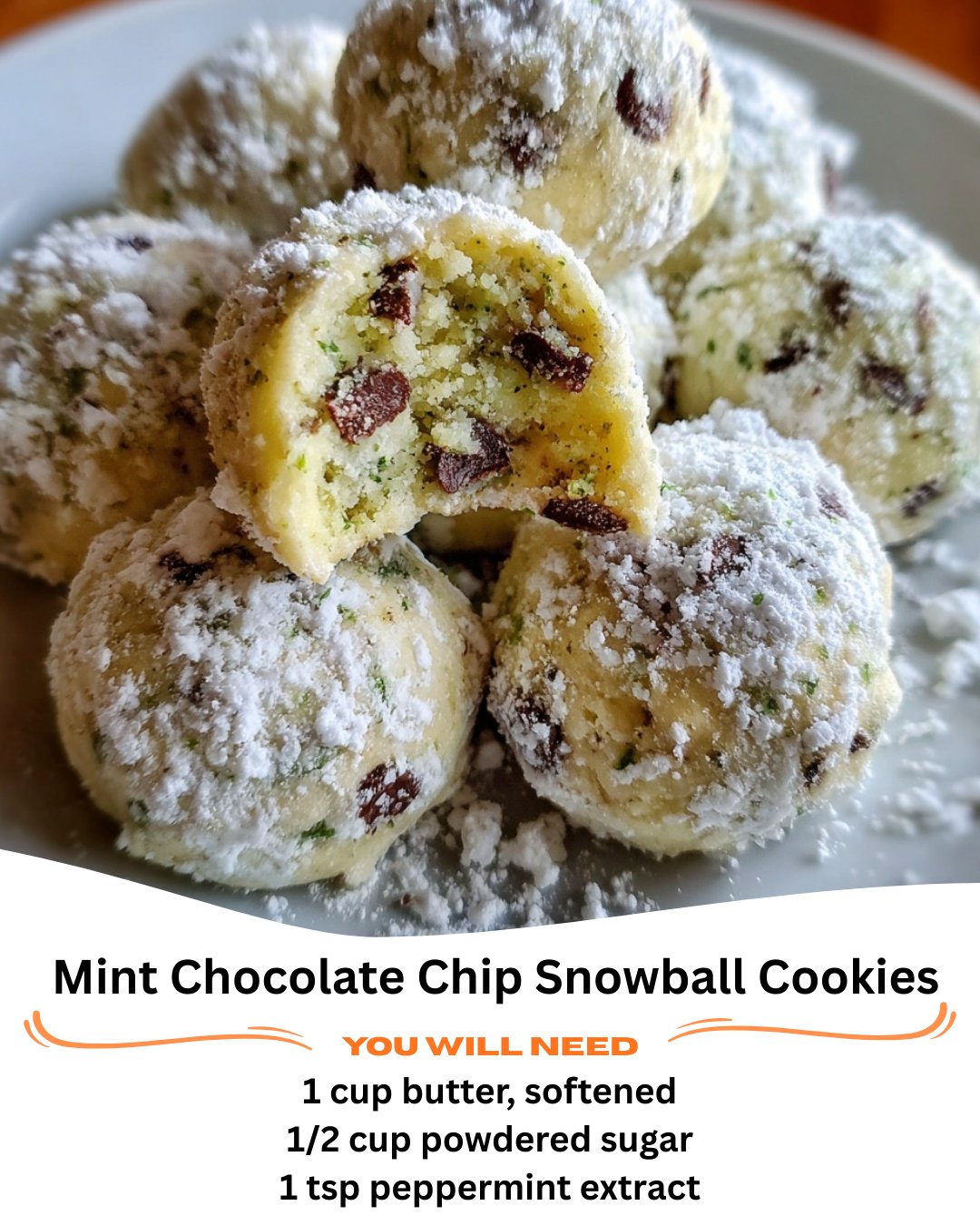 Mint Chocolate Chip Snowball Cookies