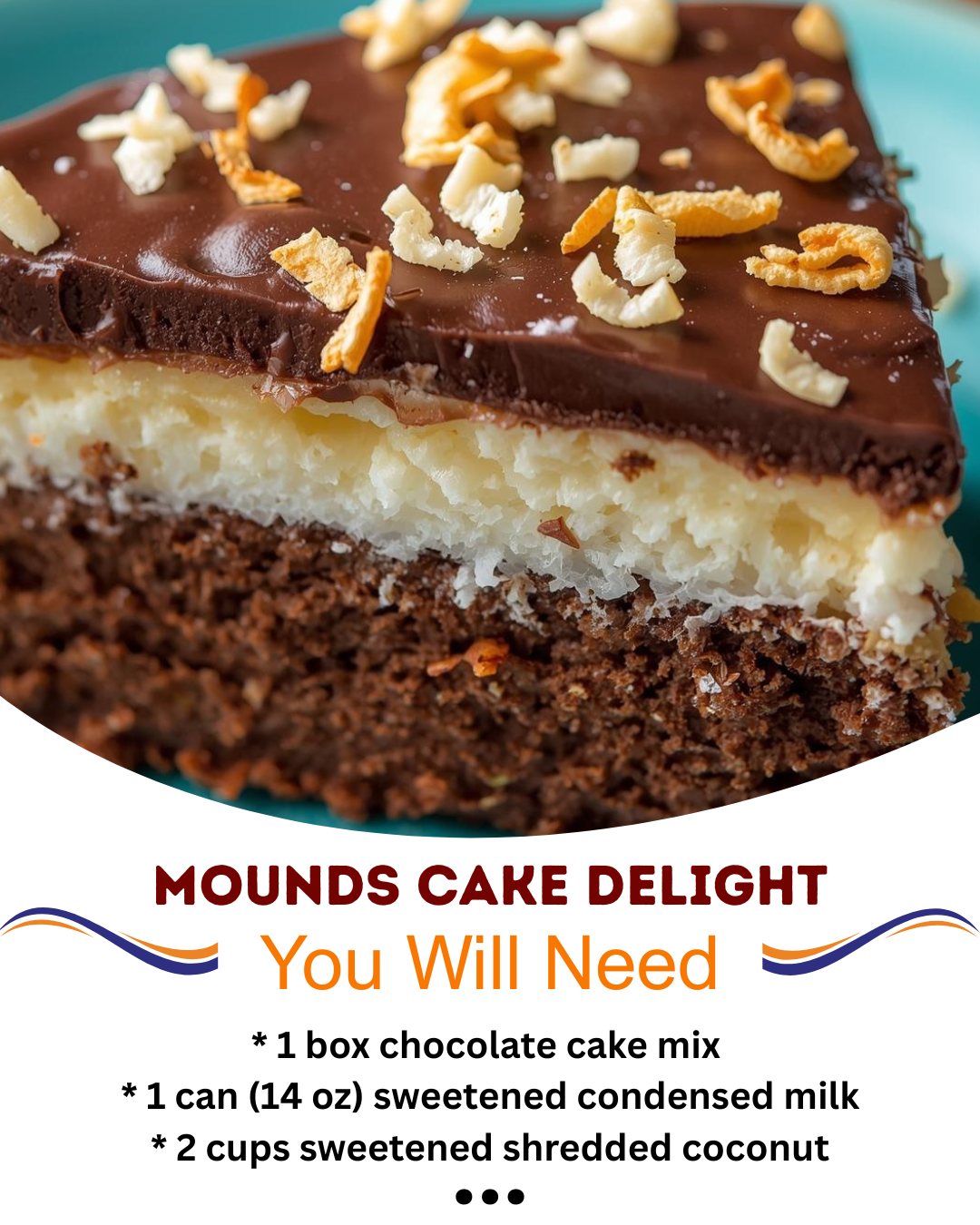 Let’s talk ingredients! For the cake, I always use a devil’s food or dark chocolate mix for the deepest chocolate flavor to balance the sweet coconut. The sweetened condensed milk is the non-negotiable star here—it’s what creates that legendary moistness and rich, creamy sweetness that soaks into the cake. Do not substitute evaporated milk; it’s not the same. For the coconut, sweetened shredded coconut is perfect here; its texture and extra sweetness mimic the candy bar filling. The whipped topping is my favorite light and fluffy contrast to the rich cake, but a dollop of fresh whipped cream works beautifully too.(See the next page below to continue…)