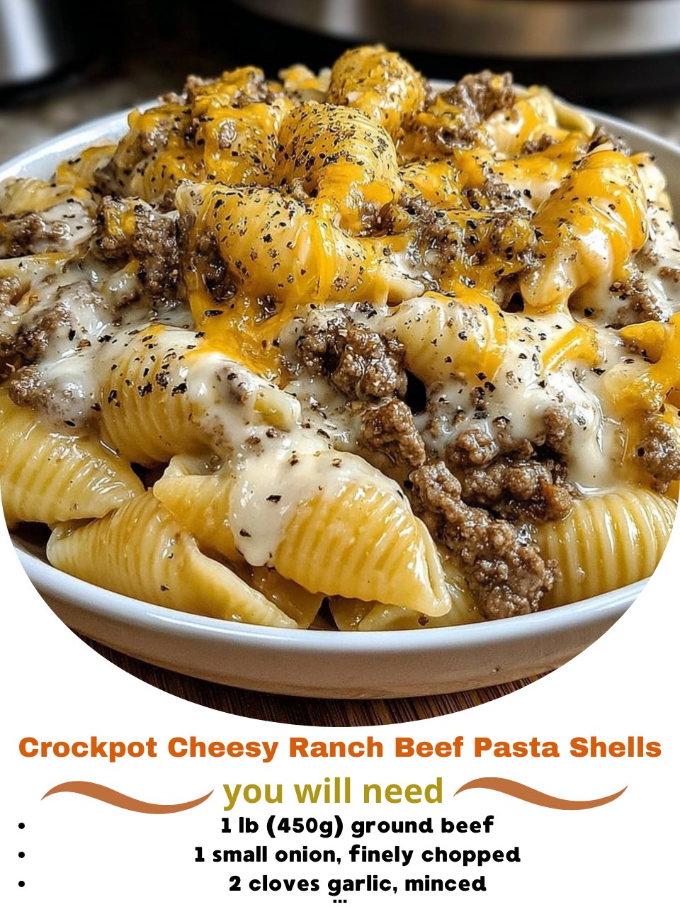 Crockpot Cheesy Ranch Beef Pasta Shells