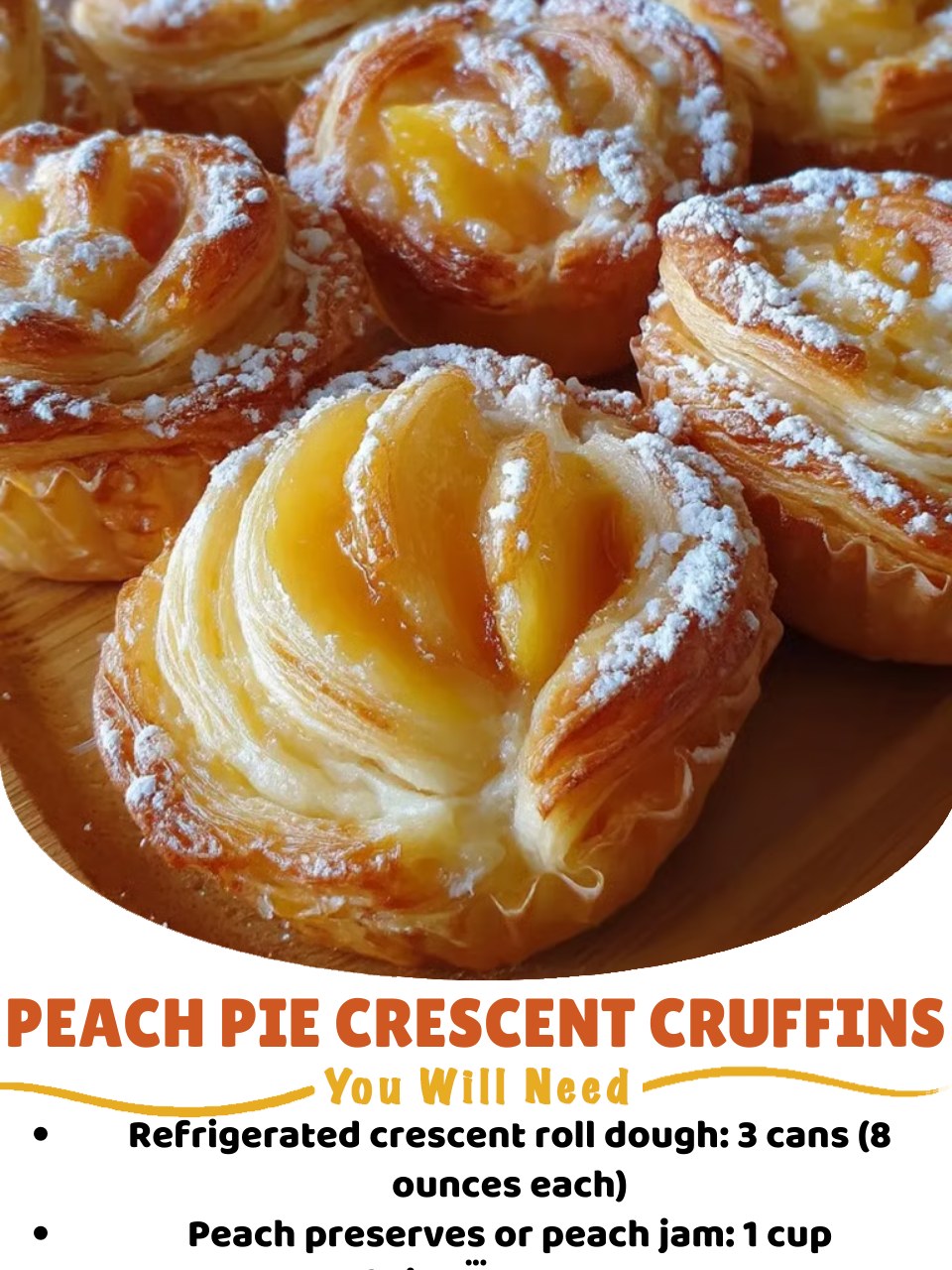 The idea for these Peach Pie Crescent Cruffins sparked one morning when I was craving something sweet, flaky, and special, but didn’t have hours to spend laminating dough. I opened a can of crescent rolls and saw not triangles, but potential. As I rolled and twisted the dough with spoonfuls of sunny peach preserves, my kitchen began to smell like a rustic summer bakery. When they came out of the oven, golden brown and glistening with a simple glaze, I was amazed. Pulling apart the first warm, flaky layer to reveal the sweet, jammy peach center was pure magic. It tasted like a cross between a buttery croissant, a muffin, and a mini peach pie—all in one irresistible bite.