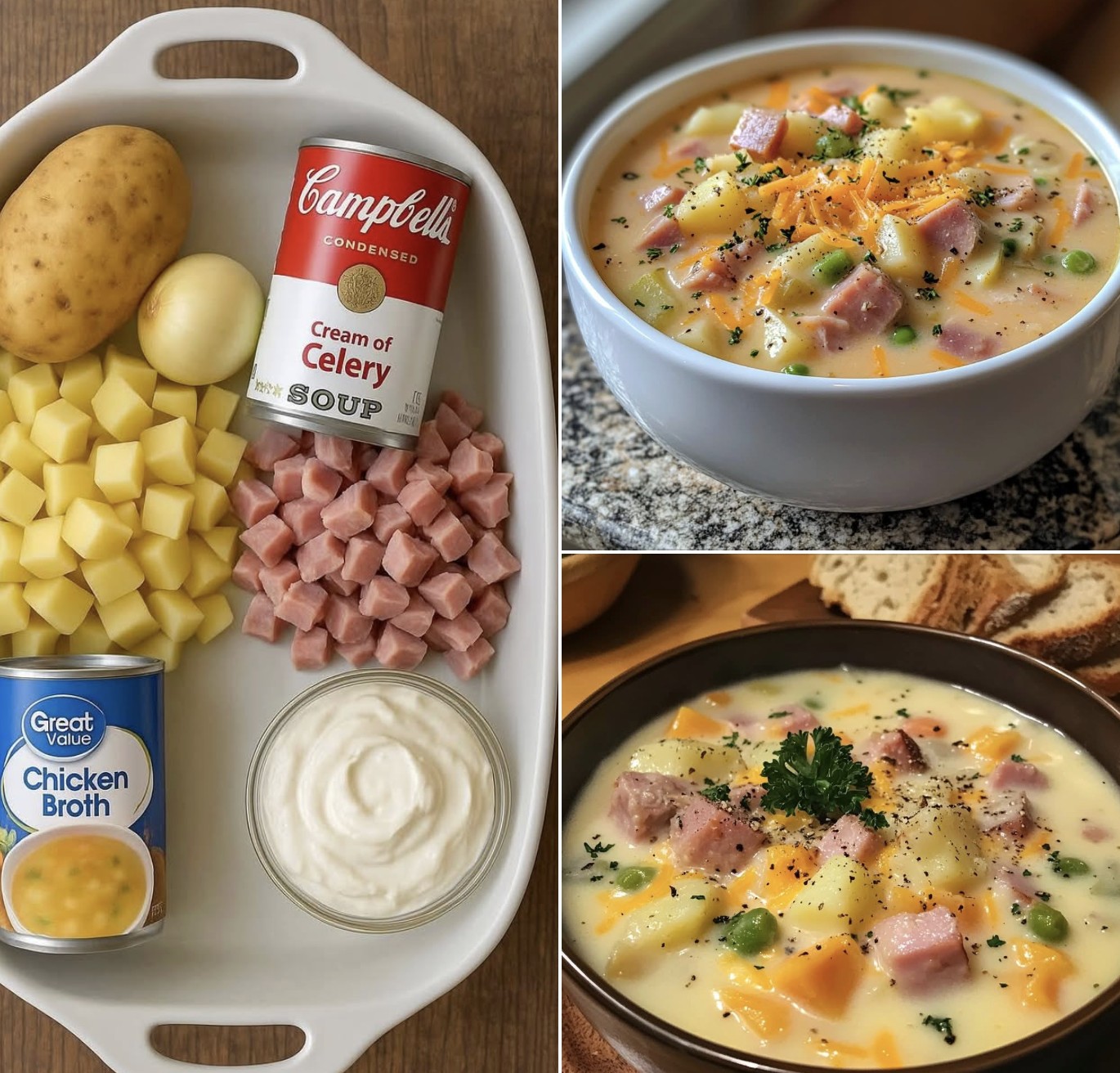 Crusty bread, garlic bread, or warm rolls are perfect for dunking and scraping up the last bits of soup from the bowl. It also sits nicely beside simple grilled cheese sandwiches or ham-and-cheese melts for a nostalgic, diner-style meal.