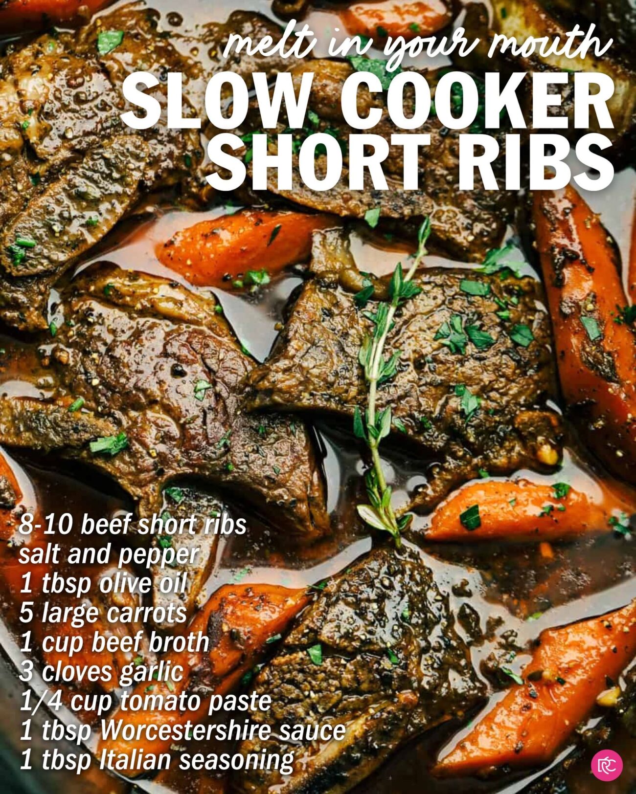 The ribs braise on low heat for 7–10 hours (or 4–6 hours on high) until the connective tissue breaks down and the meat is literally falling off the bone. After cooking, excess fat is skimmed and the braising liquid can be thickened into a gravylike sauce, yielding a luxurious, spoon‑tender beef dish that’s ideal for cozy dinners and special occasions alike.