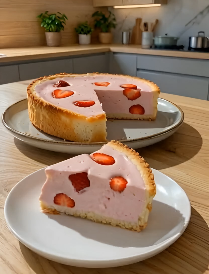 The first time I made this Strawberry Yogurt Cheesecake (Healthy & Protein-Rich), I was craving something sweet but light, and I had a bowl of fresh strawberries that needed to be used. I blended everything together, not expecting much, but as it baked, the smell of strawberries and vanilla filled my kitchen so beautifully. When I took it out, it looked soft, slightly golden, and naturally pretty. After chilling it and taking that first bite, I was hooked—it was creamy, fresh, and just sweet enough without feeling heavy.