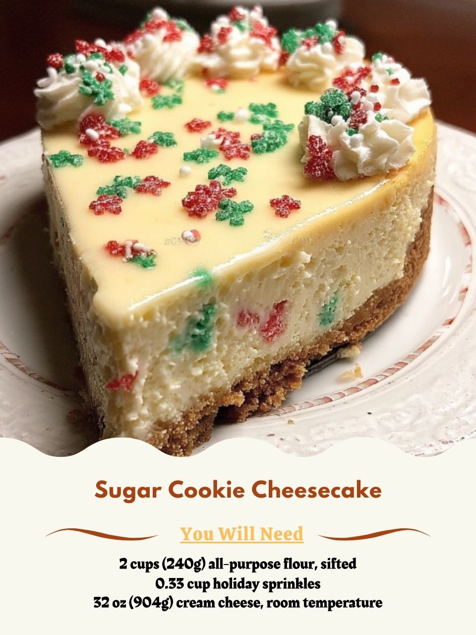 The moment I pulled this cake from the oven, my kitchen smelled like a holiday bakery—a warm, sweet blend of vanilla and butter that promised something magical. I was determined to combine the nostalgic joy of a chewy sugar cookie with the luxurious richness of a classic New York cheesecake. This creation is the glorious result: a dense, buttery sugar cookie crust that forms its own perfect layer, topped with a velvety-smooth cheesecake filling speckled with cheerful sprinkles. It’s a showstopper that feels both whimsical and incredibly decadent, perfect for making any celebration feel extra special.