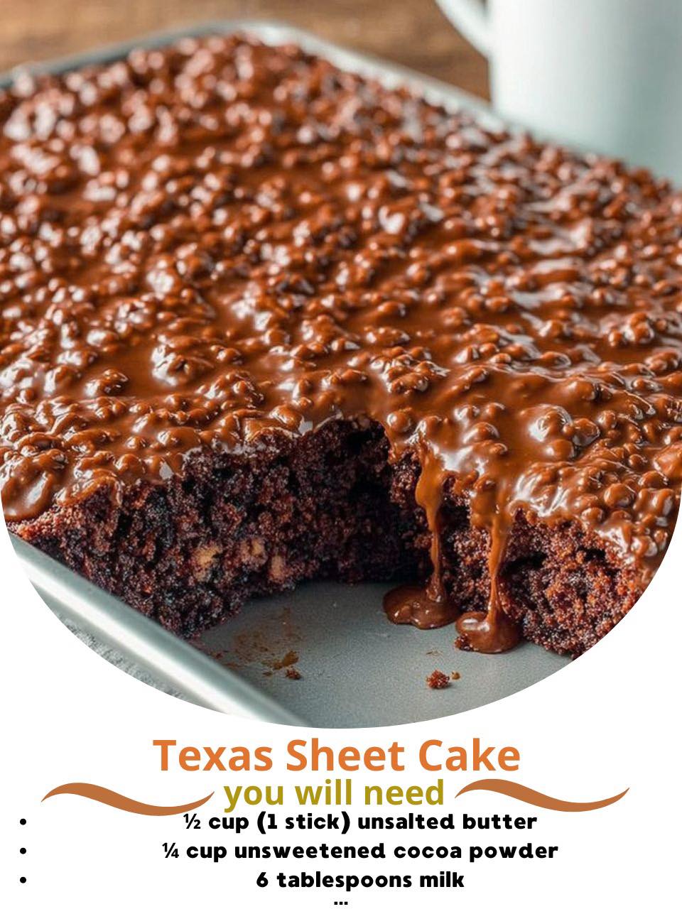 Texas Sheet Cake keeps very well, making it ideal for baking ahead. Once completely cool, cover the pan tightly with plastic wrap or foil and store it at room temperature for up to 2–3 days. The frosting helps seal in moisture, so the cake often tastes just as good on the second day, if not better, as the flavors meld.