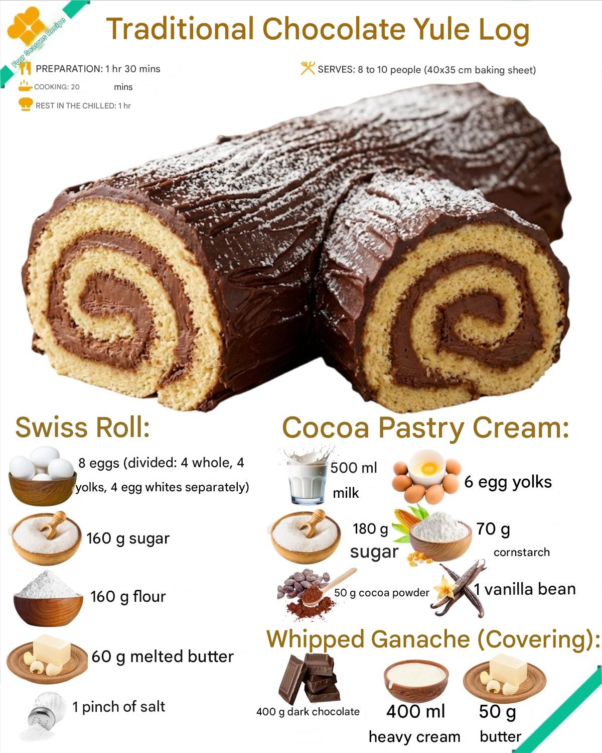 The first time I made a traditional chocolate Yule log, my kitchen felt like it had officially entered the holiday season. The smell of cocoa, warm sponge cake, and melting chocolate filled the air, and I remember feeling both excited and a little nervous as I rolled the cake for the first time. I had grown up seeing this dessert on festive tables, but making it myself felt special and meaningful. When I finally sliced into it and saw the perfect spiral, I knew this recipe would become a tradition in my own kitchen too.