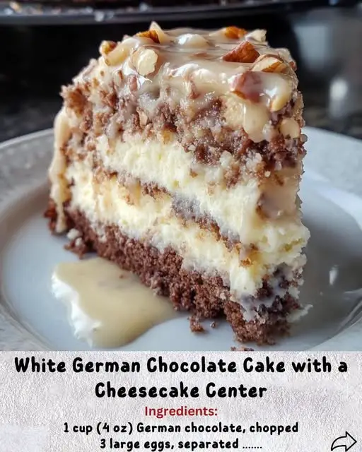 The first time I made this White German Chocolate Cake with a Cheesecake Center, my entire kitchen smelled like a dream I didn’t know I’d been waiting for. The soft sweetness of German chocolate mingled with the warm aroma of vanilla, while the cheesecake layer baked gently into the center like a hidden treasure. I remember feeling so excited pulling it from the oven, knowing it was going to be something truly special. It’s the kind of cake that immediately feels celebratory, even when you make it for no reason at all.